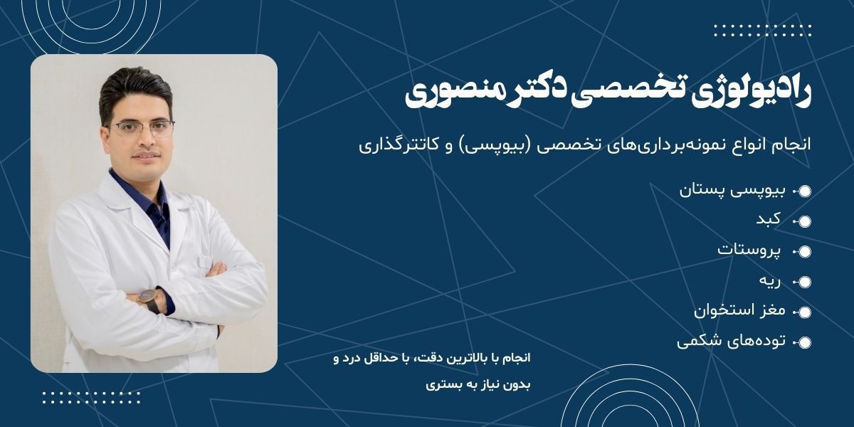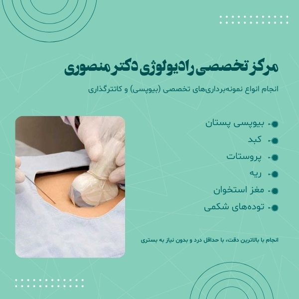 در حوزه رادیولوژی مداخلهای دکتر منصوری اقدامات تشخیصی و درمانی پیشرفتهای را با دقت و کمتهاجمی انجام میدهد از جمله: